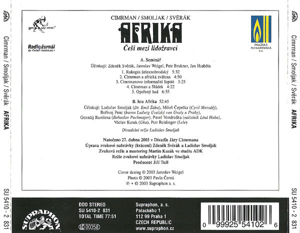 Originální CD vydané v roce 2014, zabalené! A. Seminář 1 Rukopis Železnobrodský 5:32 2 Cimrman A Africká Zvířena 4:50 3 Cimrmanovo Informační Šapitó 3:25 4 Cimrman A Sládek 4:22 5 Opeřený Had 6:55 B. Hra Afrika 6 Hra Afrika Voice Actor [Baron Ludwig Úvalský von Úvaly U Prahy] – Bořivoj Penc Voice Actor [Bohuslav Puchmajer] – Genadij Rumlena Voice […]