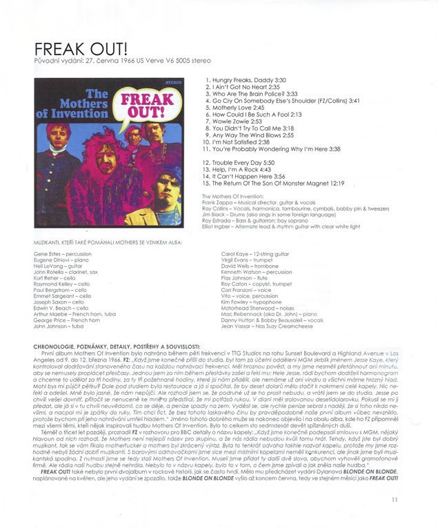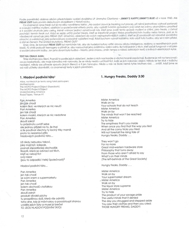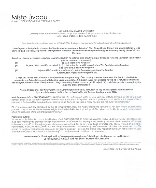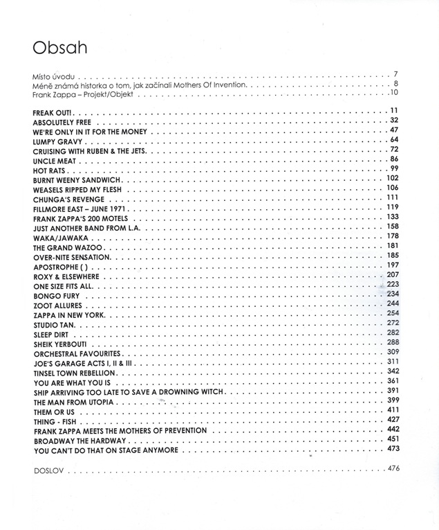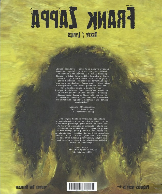Limitovaná edice 100 kusů, privátní náklad. Velmi vzácná kniha v top stavu. České překlady Zappových textů. Od Freak Out! až po Broadway the Hard Way. Barevné fotografie obalů alb s doplňujícími informacemi a kompletní texty písní v angličtině i češtině. 1,5 kg